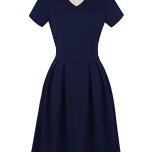 oxiuly xiuly Women’s V-Neck Casual Cocktail Party Casual Dresses Knee-Length Elegant Work Vintage Dress with Pockets OX295