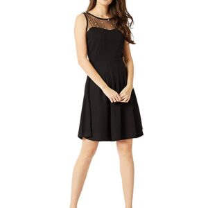Miss Chase Women’s Black Round Neck Sleeveless Cotton Solid Sheer and Pearl Detailing Mini Skater Dress