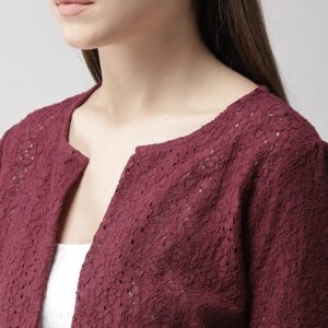 Style Quotient Women Lace Open Front Stylish Crop Shrug with Three Fourth Sleeves for Office Wear, Casual Shrug