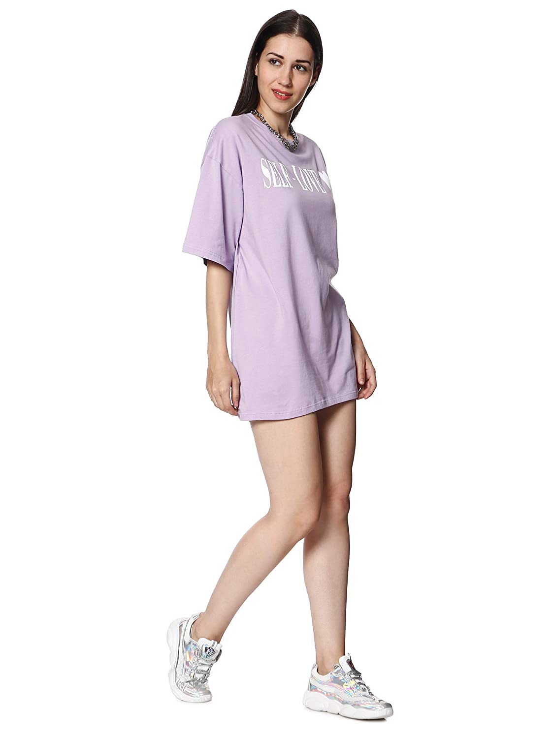 Model Height: 5ft 9inches , The Model is wearing S size. Design: SELF LOVE Printed , Fit: Loose/Oversized , Fabric: Jersey ,Length: Long, Neckline: Crew , Sleeve Length : Half Sleeves , Gentle Hand wash Only due to Tie Dye , 100% Colour fast. No Shrinkage