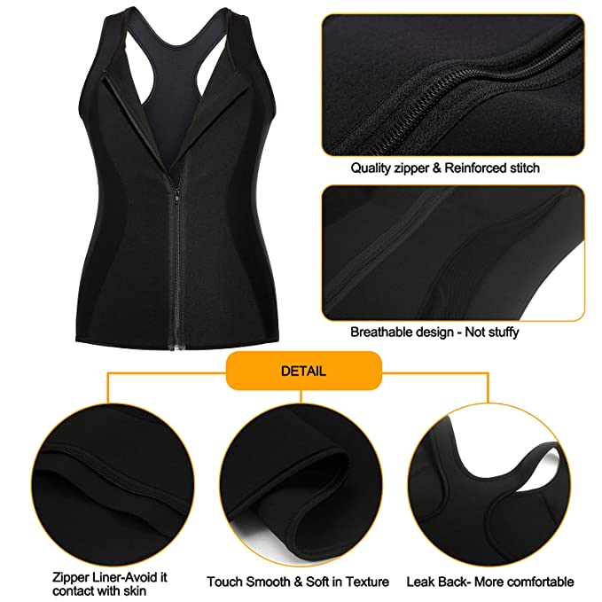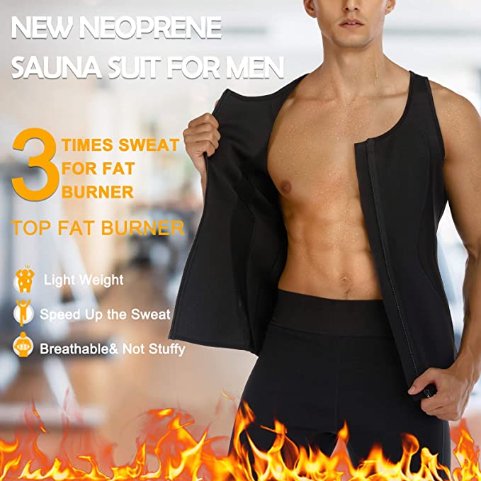 MOLUTAN Mens Hot Neoprene Sauna Suit Sweat Workout Shirt Zipper Tank Top for Weight Loss Waist Trainer Fitness Vest