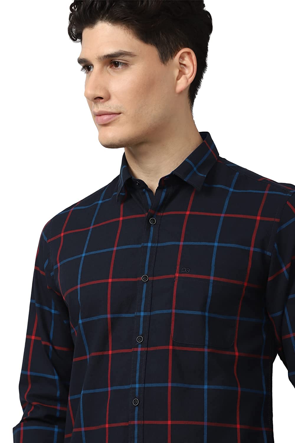 Crafted in 100% Cotton , this Navy Check Casual Full Sleeves shirt from Peter England Casuals features a Regular Collar and is tailored in Slim Fit.