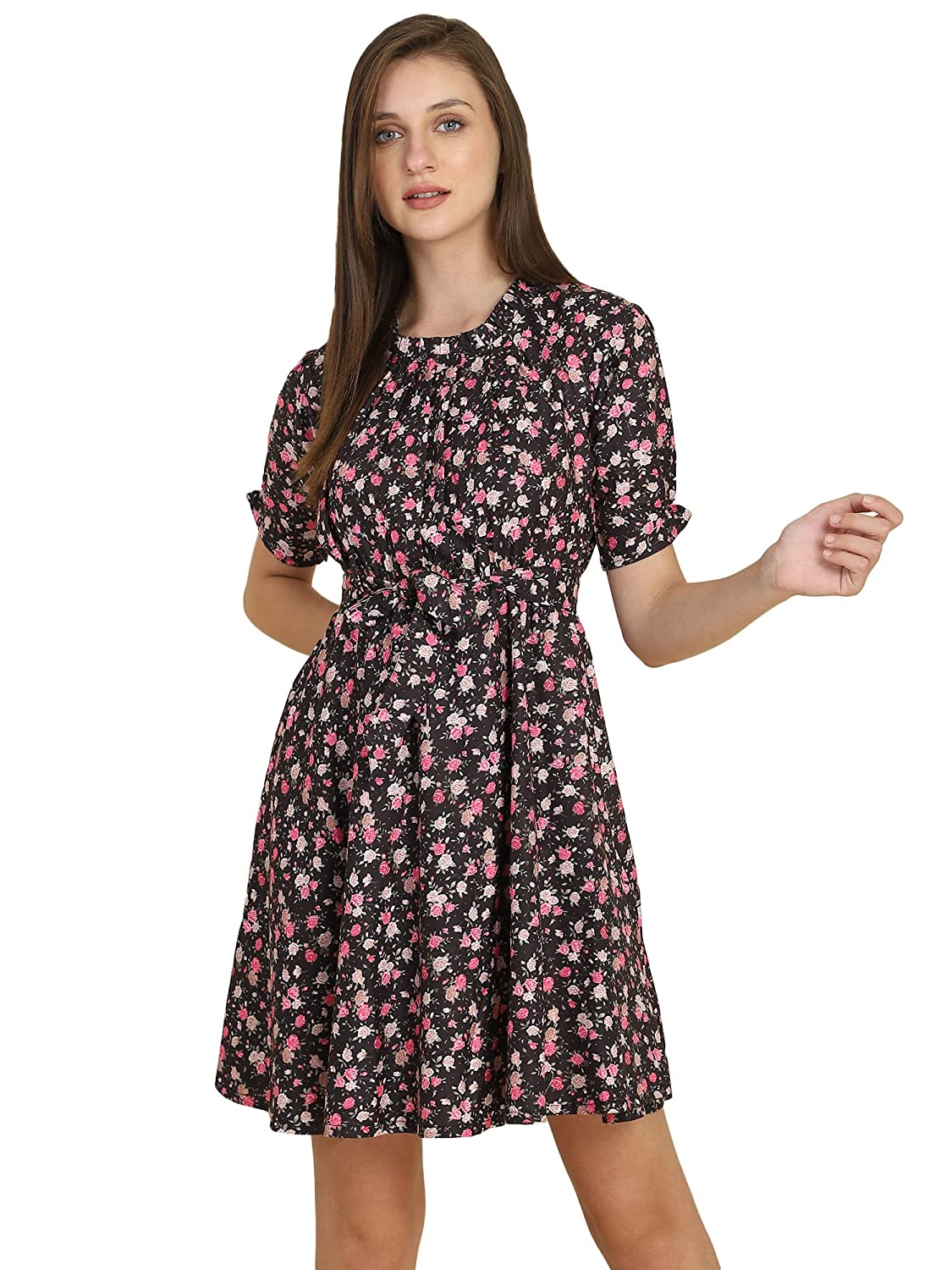 YOGYATA Women’s Stylish Fashionable Half Sleeves Designer Super Soft Round Neck One Piece Dress