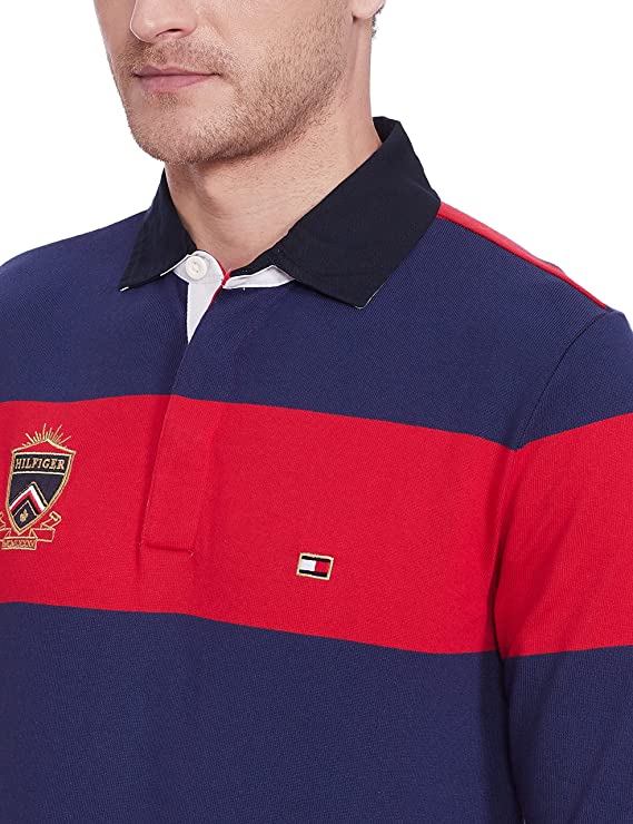 Tommy Hilfiger MEN Varsity Block Stripe Rugby Sweatshirt 100% COTTON