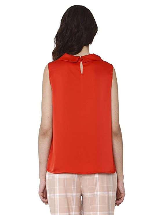 Vero Moda Women Red Solid Cowl Neck Sleeveless Slim Fit Cropped / Short Casual Wear Top