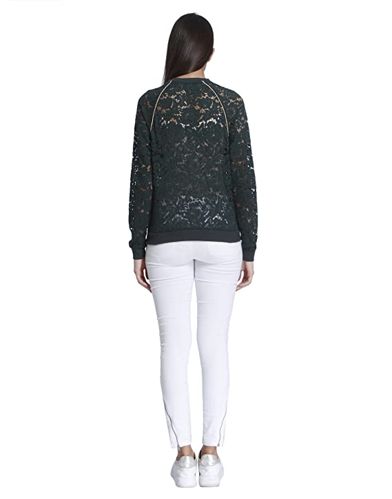 Vero Moda Women Green Lace Long Sleeve Band Collar Top